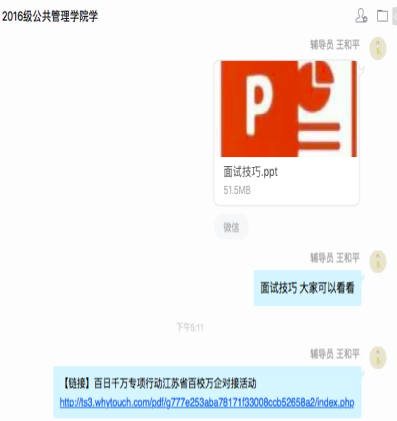 做好就业追踪,加强就业工作管理。我院正积极探索学生就业新方式,坚持就业工作目标导向,出实招,见实效,提高就业工作的针对性和有效性,保障疫情防控期间高质量推进我院毕业生顺利就业。导师们要坚持精准指导、精准帮扶、精准发力、精准跟进的原则,帮助2020届毕业生尤其是家庭困难学生顺利就业。每周跟学生不少于一次督促、交流就业情况并做好工作记录或保留网络聊天记录。辅导员要关心关爱学生,时刻关注学生的就业动向,坚持就业追踪,做好毕业生就业统计文件的填写、就业协议书和二期就业平台的审核等工作。同时希望各就业小组长们,积极配合学院的相关工作,恪尽职守,发挥模范带头作用,关注就业动态,为班级同学做好就业服务工作。