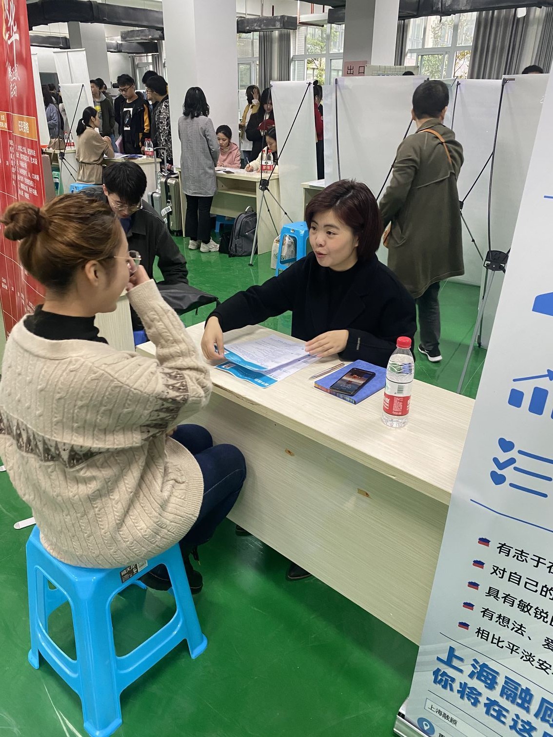 学院对此次招聘会高度重视,前期经过多方联系,共引进10加家用人单位到校招聘。陈卫星院长、黄明靖书记、秦祖伟副院长及毕业班辅导员周老师到场组织学生应聘。本次招聘会为学生提供了许多有针对性的就业岗位和实习机会,招聘现场互动频繁、气氛热烈,同学们身着正装,向心仪的企业投递简历,有序的排队进行面试,主动了解用人单位情况,并与招聘人员就工作时间、招聘岗位、薪资待遇等方面进行面对面交流。