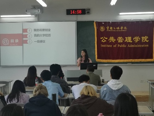会上,刘玺同学从就业流程、简历分享、常见问题几个方面向大家分享了他在选岗时的经验,并介绍了他在面试德勤集团时的一些注意事项;刘少波同学从招聘者视角分析本专业的就业去向,并与大家分享了自己在简历制作、面试时遇到的问题和解决办法;陈诗媛同学从创业历程出发,详细介绍了创业时遇到的难题和克服方法,同时勉励同学们把握在校的宝贵时间,努力提升自我。随后,学生们就关心的问题进行了热烈的交流。