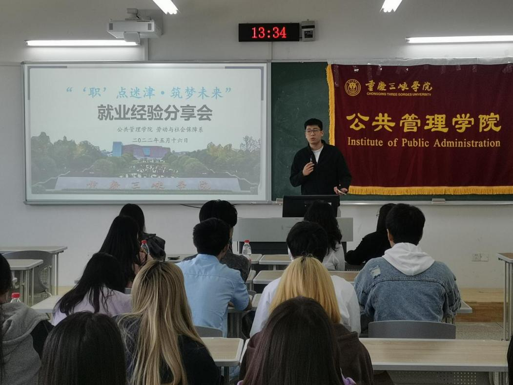 2022年5月16日下午,betway88西汉姆网页劳动与社会保障系组织开展“‘职’点迷津,筑梦未来”就业经验分享会。本次分享会邀请了2018级劳动与社会保障专业的刘玺、刘少波、陈师媛的三位学长学姐,为同学们分享就业经验。betway88西汉姆网页党总支书记黄明靖、劳动与社会保障系系主任曾娅琴,劳保系全体教师和2019级劳保系学生参加。
