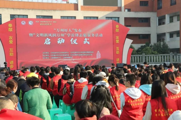 2023年3月5日上午九点三十分,由重庆市万州区新时代文明实践中心和志愿服务总队主办的“万州好人”发布 暨"文明新风润万州"学雷锋志愿活动启动仪式于学府广场正式举行。此次活动由我校betway88西汉姆网页青年志愿者协会及部分法学班同学共同参与。