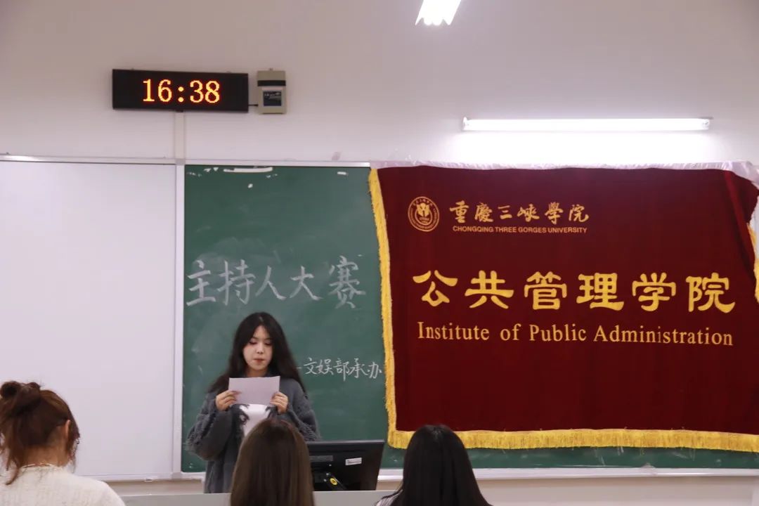 2023年10月19日下午,betway88西汉姆网页文娱部在博学楼1栋303室举办“颂光风霁月,赞和时岁稔”主持人大赛初赛。