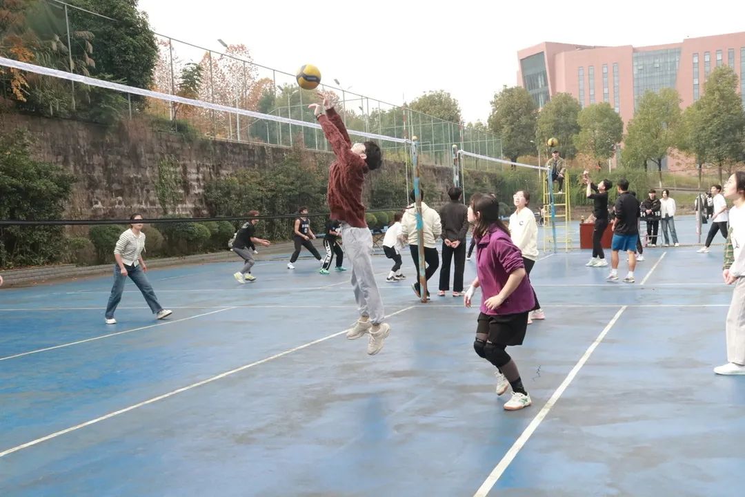 为丰富学生课外生活,加强学生身体素质,提高学生团队合作能力。2023年11月26日下午,重庆三峡学院第一届排球比赛“学院杯”小组赛在我校室外羽毛球场展开。