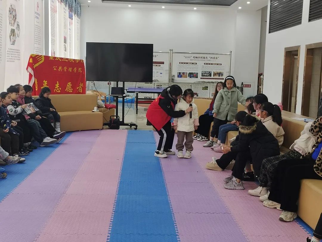 其次由黎晓艳、李冠群同学带领小朋友进行“007”、“大风吹”、“萝卜蹲”三个游戏。在游戏过程中,小朋友们积极参与,并展示自己的才艺。