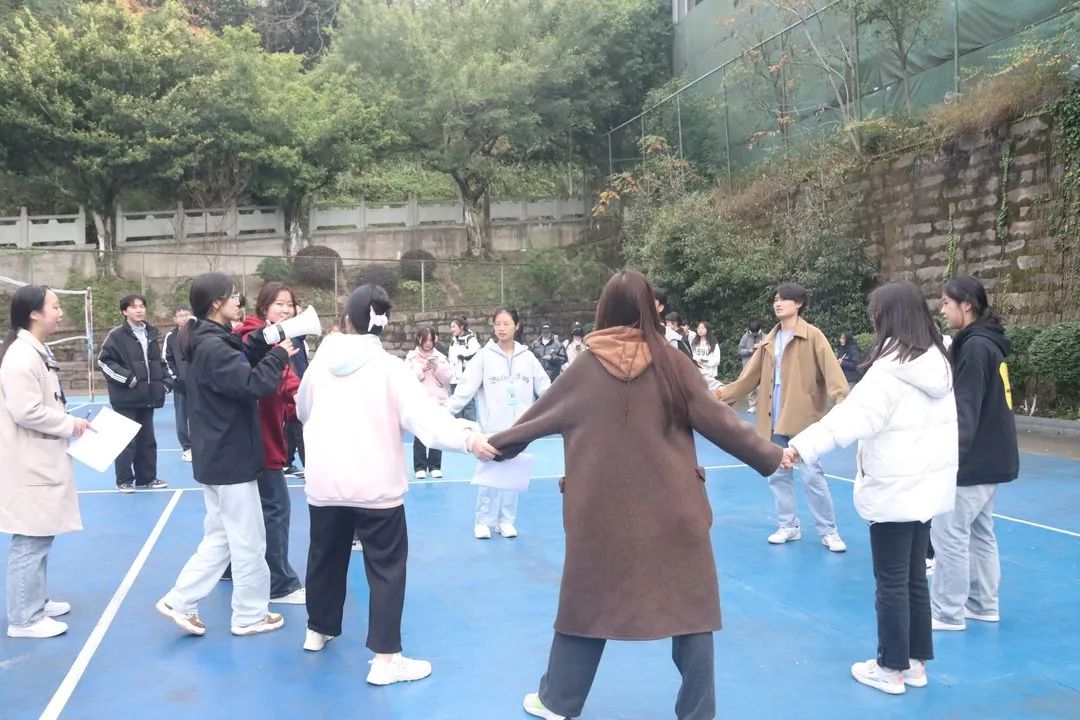 最后一个环节是抓住或跑开。扔球人需要叫出其中一个人的名字,被叫住名字的人应接住球并朝剩下的人喊出名字,将球扔向对应的人。同学们在该游戏环节中不仅增进了对彼此之间的了解,还提升了反应速度。