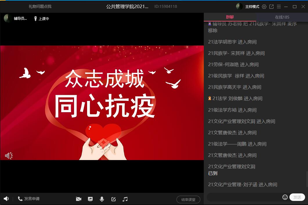 3月20日晚上,betway88西汉姆网页各年级通过腾讯会议、QQ群课堂等形式开展“众志成城 同心抗疫”线上主题班会。