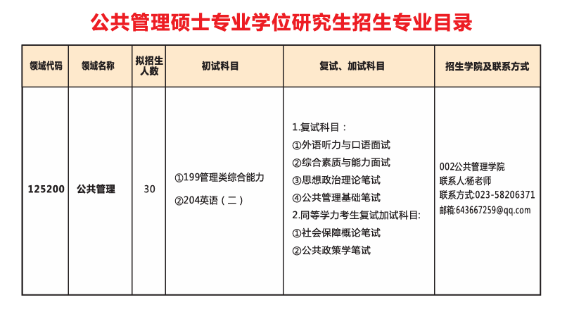 2.复试内容包括思想政治理论、公共管理基础、外语听力和口语测试、综合能力面试等。不参加复试或复试不合格的考生不被录取。