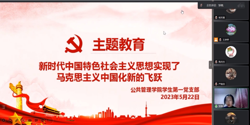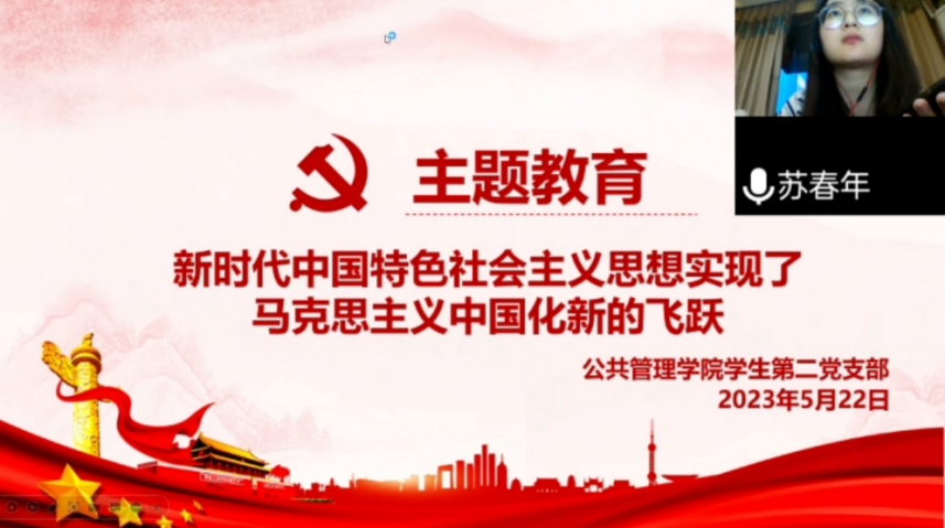 为了全面贯彻落实中共重庆三峡学院委员会《关于在全校开展学习贯彻习近平新时代中国特色社会主义思想主题教育的实施方案》要求2023年522日,我院学生第一、二党支部通过腾讯会议组织主题教育集中学习,主题是:习近平新时代中国特色社会主义思想实现了马克思主义中国化新的飞跃。本次集中学习分别由学生第一党支部书记邹倩同志,学生第二党支部组织兼纪检委员苏春年同志领学。