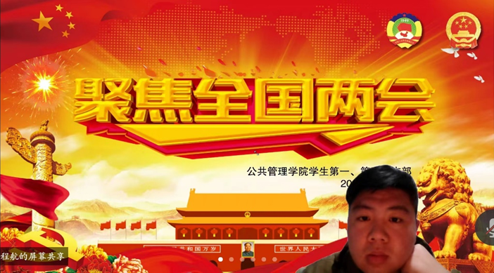 会上,程航带领学生党员深入学习了《中国人民政治协商会议全国委员会常务委员会工作报告》、《政府工作报告》、《全国人民代表大会常务委员会工作报告》等。同学们一致表示,要自觉把思想和行动统一到两会精神上来,自觉把两会精神贯穿落实到自身本职工作中去,以高度的政治责任感和历史使命感,忠实践行习近平新時代中国特色社会主义思想,认真学习,为党的事业不懈奋斗!